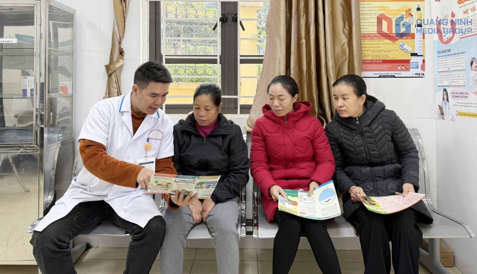 Bác sĩ tại Trạm Y tế xã Lục Hồn tuyên truyền cho người dân địa phương về các biện pháp phòng chống dịch bệnh.