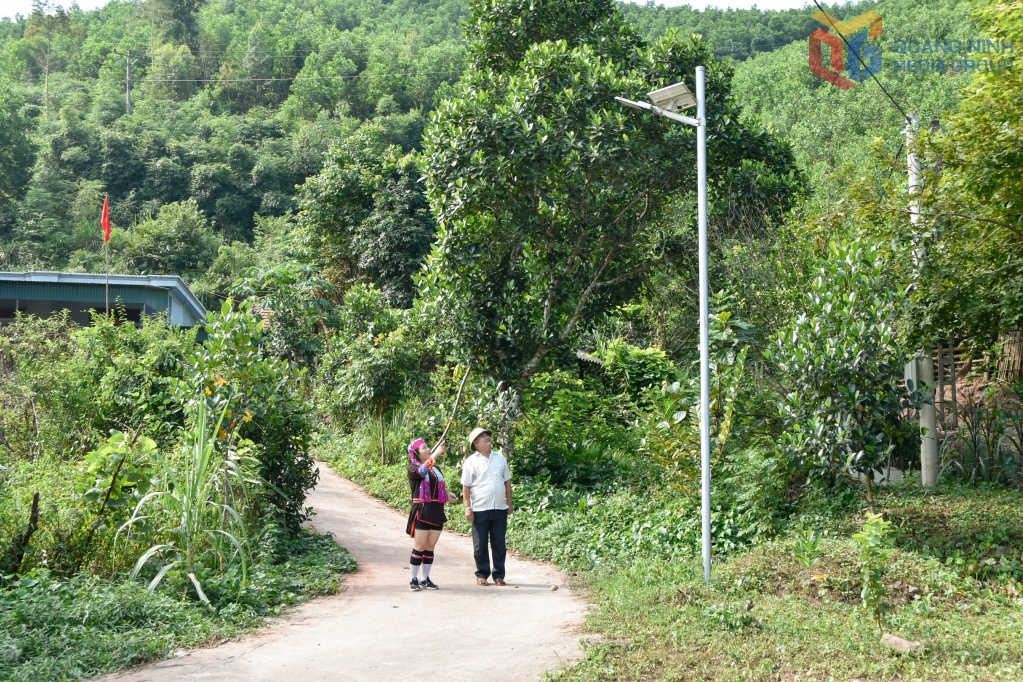 Cán bộ thôn Đài Van (đặc khu Vân Đồn) kiểm tra chất lượng công trình đèn chiếu sáng tuyến đường NTM.
