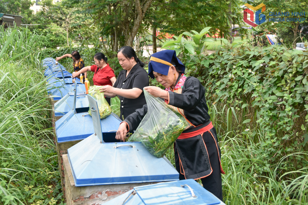 Người dân xã Ba Chẽ thực hiện mô hình phân loại rác thải sinh hoạt, tái chế rác hữu cơ.
